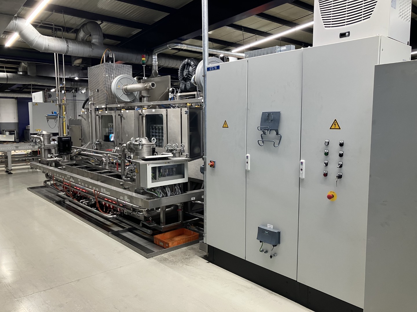 Kontinuerligt rengöringssystem S 60229/2 Högtryckstvätt - rengöring - sköljning - torkning - kylning Med cirkulationssystem för godsbärare Maskinkonstruktion: helt i rostfritt stål
